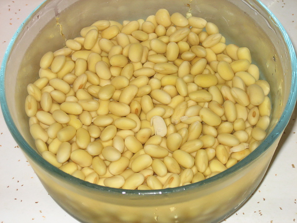 下面就是泡了一夜,已經變成兩倍大的黃豆。