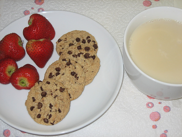 煮好後的豆漿,配上巧克力燕麥餅跟草莓,完美的下午茶!