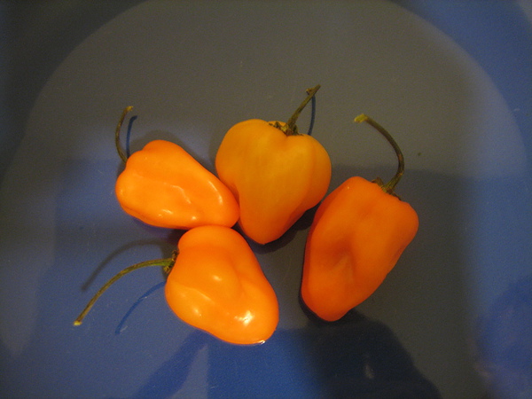 唯一沒試過的品種就是文章一開始那張照片裡叫做 Habanero 的辣椒。我想與其買那些確定不辣的品種,不如試試沒吃過的 Habanero。而第一次買,還是不要買太多,所以只意思意思拿了四顆。