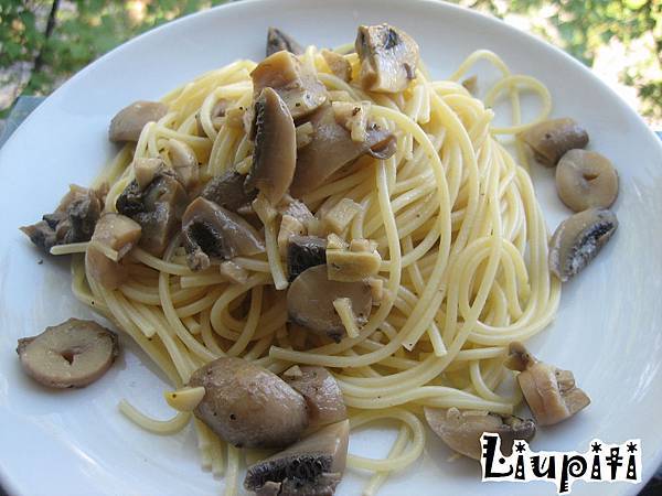 醃蘑菇的香料橄欖油拿來拌麵,配上切片油醋漬蘑菇,真的超讚的!!!