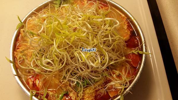 但是加了白菜葉味道還是很辣,我就又把最近自己孵的一大叢綠豆芽全部加進去(只有洗過,葉子跟根全部沒有去掉就直接加進去)。